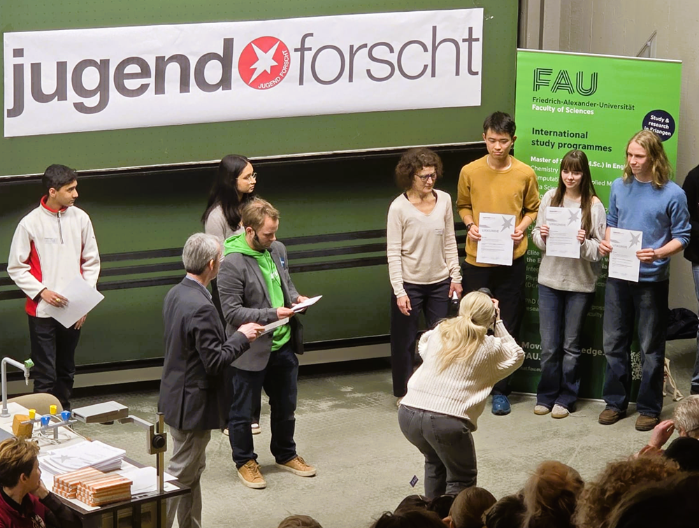 Der Wahlkurs „Jugend forscht“, den es an unserer Schule erst im zweiten Jahr in Folge gibt, kann bereits auf einen beeindruckenden Erfolg zurückblicken: In diesem Jahr nahmen die Schülerinnen und Schüler am renommierten Wettbewerb Jugend forscht teil – und das mit herausragenden Ergebnissen. „Jugend forscht“ ist Deutschlands bekanntester Nachwuchswettbewerb im Bereich Naturwissenschaften und Technik. Seit 1965 fördert er junge Menschen, die mit Neugier, Kreativität und wissenschaftlicher Ausdauer eigenen Forschungsfragen nachgehen. Teilnehmen können Schülerinnen und Schüler in verschiedenen Fachgebieten wie Arbeitswelt, Biologie, Chemie, Geo- und Raumwissenschaften, Mathematik/Informatik, Physik oder Technik. Der Wettbewerb findet in mehreren Runden statt – vom Regional- über den Landes- bis hin zum Bundeswettbewerb. Besonders erfreulich ist, dass alle fünf teilnehmenden Gruppen unserer Schule einen Preis gewinnen konnten. Dieses außergewöhnliche Ergebnis unterstreicht nicht nur den großen Einsatz der Schülerinnen und Schüler, sondern auch die intensive Vorbereitung und Betreuung durch ihren engagierten Kursleiter Herrn Jonas Merkt. Unsere Preisträgerinnen und Preisträger im Überblick:Helena Sawicka: 3. Platz in der Kategorie Mathematik / Informatik Emma Rygl: 2. Platz in der Kategorie Chemie Annika Jerosch und Mathilda Urban: 2. Platz in der Kategorie Technik Antonina Jedlinska, David May und Qitian Zhou: 3. Platz in der Kategorie Arbeitswelt sowie Sonderpreis der Heise Zeitschriften Finn Degen und Jonathan Ledwon: 1. Platz in der Kategorie Mathematik / Informatik sowie Sonderpreis Umwelttechnik Besonders hervorzuheben ist der erste Platz von Finn Degen und Jonathan Ledwon, der mit der Qualifikation für den Landeswettbewerb verbunden ist. Damit vertreten sie unsere Schule in der nächsten Wettbewerbsrunde auf Landesebene. Wir gratulieren allen Teilnehmerinnen und Teilnehmern herzlich zu ihrem großartigen Erfolg. Der Wahlkurs „Jugend forscht“ beweist damit bereits im zweiten Jahr seines Bestehens, welches Potenzial in der Förderung eigenständigen Forschens und wissenschaftlichen Arbeitens steckt. |