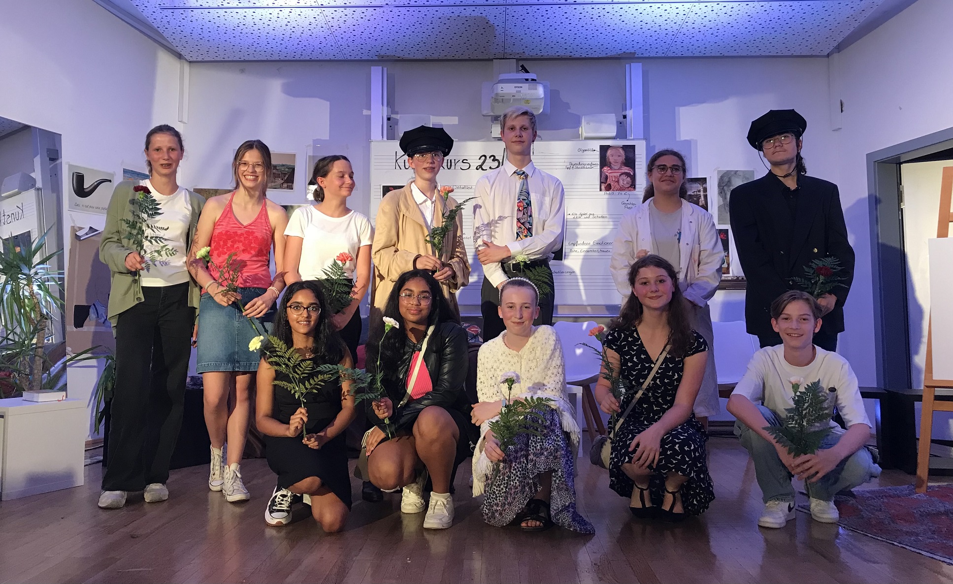 Aus mehreren Gründen sind wir beeindruckt und stolz auf sie: Zum einen handelte es sich um eine richtige Premiere. Denn der Wahlkurs Mittelstufentheater wurde im September 2024 zum ersten Mal seit fast zehn Jahren eingerichtet und die Entscheidung, dass es am Ende des Schuljahres eine Aufführung geben würde, trafen die Schülerinnen und Schüler zusammen mit ihrer Kursleiterin Frau Endreß erst mitten im Schuljahr. Zum anderen mussten die jungen Schauspielerinnen und Schauspieler eine Woche vor ihrem großen Abend plötzlich erfahren, dass Frau Endreß nur noch per Videokonferenz die Proben mitverfolgen und nicht vor Ort sein könnte. Zum Glück sprangen gleich mehrere Lehrkräfte ein und retteten durch ihren Einsatz die Vorstellung. Frau Bauer, Frau Küppersbusch und Frau Braune unterstützten bei den letzten Proben am Wochenende, packten bei der Bühnengestaltung mit an und kümmerten sich darum, dass der große Musiksaal sich in ein Theater verwandeln konnte. Die wirklichen Heldinnen und Helden des Abends waren aber natürlich die Mitglieder der Theatergruppe selbst. Sie haben ein sehr wichtiges gesellschaftliches Thema auf die Bühne gebracht und uns daran erinnert, wie wichtig es ist, nicht wegzusehen. Liebe Theatergruppe Mittelstufe, ihr habt uns einen tollen Abend geschenkt und wir freuen uns schon auf die nächste Aufführung! |