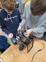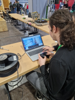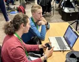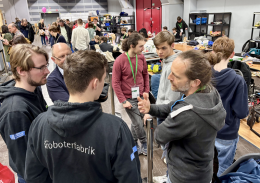 Am zweiten Tag standen wir dann noch vor einigen Problemen mit unserer Software. Dies hinderte uns daran am Donnerstagvormittag, an der ersten Runde der Challenges teilzunehmen. Doch mithilfe des Teams Francor konnten wir die Fehler beheben. Dabei mussten wir ein anderes Bauteil austauschen, dass uns ebenfalls EduArt zur Verfügung stellen konnte. Nachdem die Software des Roboters endlich stabil lief und wir noch ein paar andere Verbesserungen an der Stabilität unseres Roboters vornahmen, konnten wir an der zweiten Hälfte des Tages in den Wettbewerb einsteigen. Trotz gelegentlicher technischer Hürden konnten wir erste Erfolge in den Läufen feiern.