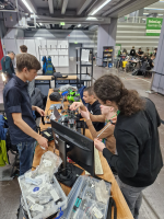 Die German-Open erstreckte sich über fünf außergewöhnlich Tage für unser Team. Der erste Tag war eher ruhig und unspektakulär, da er hauptsächlich der Vorbereitung diente und noch keine Läufe stattfanden. Doch auch dieser Tag war nicht ganz ereignislos: Unsere Technik hatte noch mit einigen Problemen zu kämpfen, die es dringend zu lösen galt. Nach eingehender Untersuchung fanden wir den Fehler in der Steuerungshardware unseres Roboters. Zum Glück sprang die Firma EduArt ein und stellte uns schnell eine Ersatzkomponente zur Verfügung.
