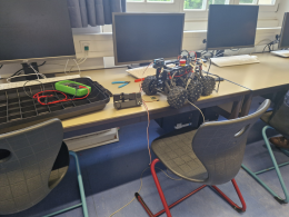 Initiator Prof. Dr. May brachte Impulse aus der Wissenschaft in die Schule und zeigte, wie es möglich ist Servomotoren so anzusteuern, dass sich ein Roboterarm in die richtige Richtung beweget. Dazu ist es natürlich wichtig zu wissen welche Software, in diesem Fall ROS 2 Pakete, dafür nötig ist und wie diese richtig konfiguriert werden muss. Mit seiner Unterstützung konnten die ersten Bewegungen mit dem Roboterarm durchgeführt werden und Konzeption und Auslegung eines Roboterarms besprochen werden.