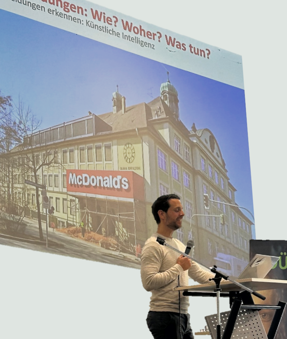 Den knapp 200 Schülerinnen und Schülern aus der Oberstufe erläuterte Herr Drotschmann auf nachvollziehbare Weise, wie leicht sich Menschen durch manipulativ gestaltete Inhalte täuschen lassen. Dabei griff er unter anderem humorvolle Beispiele wie das HB-Männchen auf, um Analogien zu emotionalisierender Werbung aufzuzeigen. Anhand weiterer Beispiele aus der internationalen Presse veranschaulichte der Experte, wie gefährlich Desinformation im politischen Zusammenhang sein kann – etwa, wenn irreführende Beiträge gezielt zur Beeinflussung des Wahlverhaltens eingesetzt oder wenn Bilder und Videos aus ihrem ursprünglichen Zusammenhang gerissen, manipuliert und anschließend massenhaft verbreitet werden. Im weiteren Verlauf wurde die Bedeutung sozialer Medien bei der Verbreitung von Falschmeldungen thematisiert. Gleichzeitig klärte „MrWissen2go“ auf, wie sich Desinformation entlarven lässt und anhand welcher Merkmale man sie erkennen kann. Der Vortrag regte nicht nur zum Nachdenken an, sondern zeigte auch, wie wichtig Medienkompetenz ist, um Demokratie und gesellschaftlichen Zusammenhalt zu schützen.