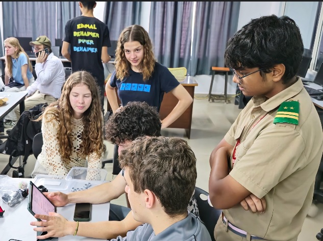 Im Vorfeld organisierten Herr Stadler und Frau Hoffmann Workshops zum Thema „Programmieren“ und „Löten“. Gleichzeitig erfolgte der Austausch mit den Schülerinnen und Schülern aus Indien – natürlich auf Englisch – online.
