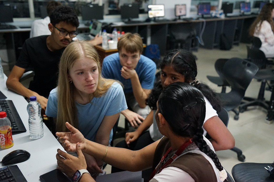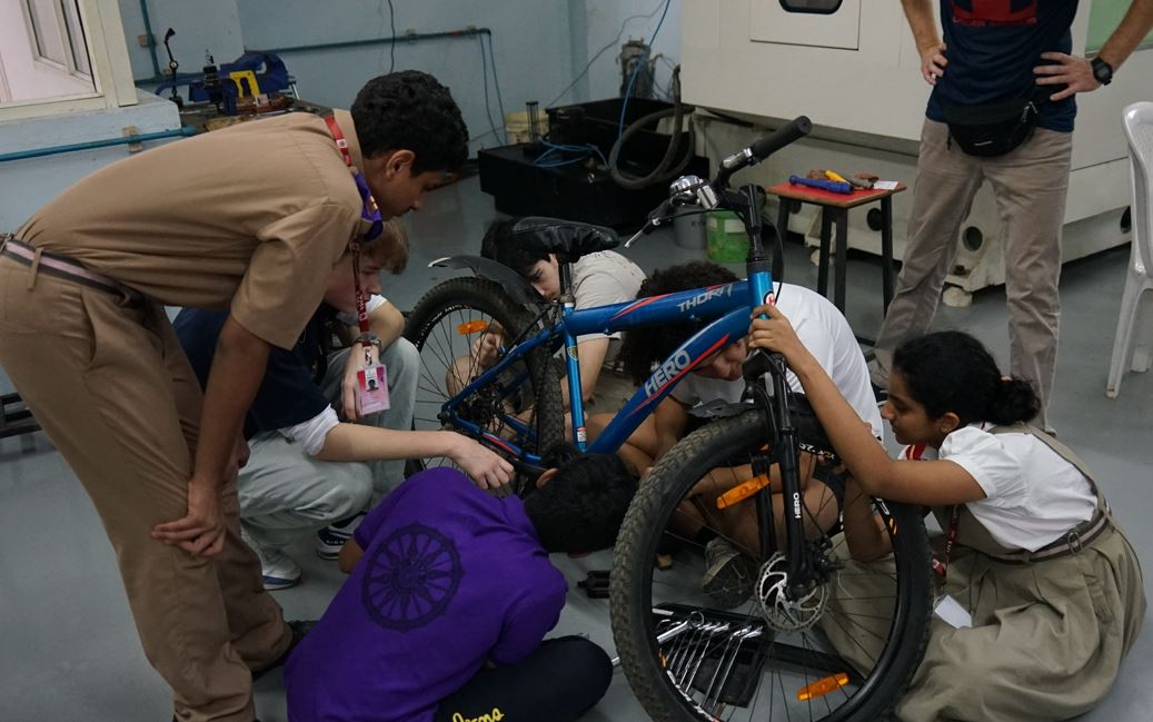 Im Juli 24 kamen die Schülerinnen Indien nach Nürnberg, um eine Woche lang gemeinsam mit den Schülerinnen aus Nürnberg zu arbeiten. Eine Gruppe stattet einen Blindenstock mit einer KI-gesteuerten Kamera aus, der vor Hindernissen warnt. Eine andere entwickelte einen „Kardiotrainer“, der über einen Sensor im Lenker eines e-bikes den Pulsschlag registriert und dann mittels eines Arduinos den Motor so steuert, dass das Radfahren bei einem konstanten Puls möglich wird.