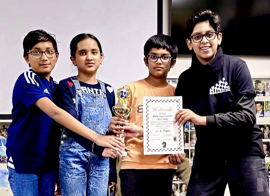 Unter der Federführung der beiden Referenten für Schulschach, David Denninger und Mikhail Shlosberg, veranstaltete das Albert-Schweitzer-Gymnasium in Erlangen nicht zum ersten Mal überaus gelungene Mittelfränkische Meisterschaften. Zentrale Spielräume, sogar zwei Verpflegungsstellen, akzeptable Wartezeiten zwischen den Spielrunden, organisatorisch war alles in bester Ordnung! Das Dürer-Gymnasium trat wie im Vorjahr mit insgesamt acht hochmotivierten Teams an. Doch war uns allen klar, dass eine Wiederholung des Gewinns aller möglichen Titel einem Wunder gleich käme! Nun, es wurden zwei Meisterschaften sowie einmal Silber und zweimal Bronze, unter dem Strich also fünf Pokale. Damit sollten wir wieder die erfolgreichste Schule geworden sein! Zu den sportlichen Details... WK-M(ädchen): Hier gelang es Antonina Jedlinska, Yüxin Lau, Sofiia Bielik und Alexandra Memiac mit unserer neuen Schulmeisterin Eda Osman am Spitzenbrett den Vorjahrestitel zu verteidigen! Sehr souverän gewannen sie diesmal alle Wettkämpfe und standen bereits eine Runde vor Turnierende als Sieger fest, herzlichen Glückwunsch! WK-4 (ab 2012): Unser "Zweites" Team mit den fünf Turnierneulingen Parth Jugati, Daniel Rodriguez, Ariadni Vachtanidou, Shayon Zubear und Kerem Keskinci spielte ein sehr gutes Turnier, hatte aber das Pech, in der letzten Runde gegen unser "Erstes" antreten zu müssen. Durch diese Niederlage rutschten sie dann leider noch von Platz 3 auf 9. Denn dem bis auf Charith Kaza am Spitzenbrett mit Sathwik Atturi, Akhila Bharathula und Agasthya Bharathula ganz neu aufgestellten "Ersten" Team gelang die Wiederholung des Rekords unseres WK- 4-Teams aus dem Jahre 2016: Denn sie gewannen nicht nur alle Wettkämpfe, sondern alle Partien, eine sensationelle Vorstellung! WK-3 (ab 2010): Obwohl wir hier ohne Titel blieben, waren unsere beiden Teams mit dem Gewinn von 2 Pokalen jedoch insgesamt am erfolgreichsten! Unser "Zweites" Team mit den Routiniers Juraj Cervenka, Samuel Stöhr und Antong Liu sowie den Neulingen Bruno Gurt und Franz Lang belegte am Ende einen phantastischen 3. Platz, wobei sie nur zwei Wettkämpfe verloren, gegen den späteren Sieger und unser "Erstes" Team! Dieses war mit Jonas Dersewski, Arthur Papst und Anton Wiedenhöfer besetzt, die die letztjährige WK-4 gewannen, und wurden hervorragend von Theodor Ließ ergänzt. Der spätere Sieger war auch ihr Spielverderber, es blieb ein sehr guter 2. Platz! WK-2 (ab 2007): Beginnen wir wiederum mit dem "Zweiten" Team: Angetreten, um Spaß zu haben, setzten Finn Schramm, Felix Kulow, Aditya Bisale und Oskar Ueltzen ihren Vorsatz in die Tat um, landeten in dieser qualitativ am besten besetzten Altersklasse auf einem guten 12. Platz und hatten am Ende des Tages viel an Erfahrung gewonnen! Unser "Erstes" Team mit Anton Scheirich, Tim Müller, Jonas Spear und David Tacu war bis Runde 4 auf Kurs Titelverteidigung, verlor diesen Wettkampf dann aber nach einer vom Schiedsrichter selbst zugestandenen absoluten Fehlentscheidung und kam völlig außer Tritt. Trotzdem schafften sie es noch, irgendwie Platz 3 zu retten! WK-1 ("Senioren"): Not macht erfinderisch, lautet eine alte, naja, Weisheit. Jedenfalls hätte außer Rouad Abd Alatif niemand in dieser Alterklasse spielen müssen. Zum Glück erklärten sich mit Jan Vilinski, Luis Sander und dem 5 Jahre zu jungen Brendan Kilian drei weitere Spieler bereit, hezlichen Dank! Am Ende Platz 5 geht somit mehr als in Ordnung! Für zumindest zwei unserer Teams geht die Reise am Samstag, 15. März, im Willibald-Gluck-Gymnasium in Neumarkt in der Oberpfalz also weiter... Nach dem Turnier ist vor dem Turnier... Thomas Gebhard |